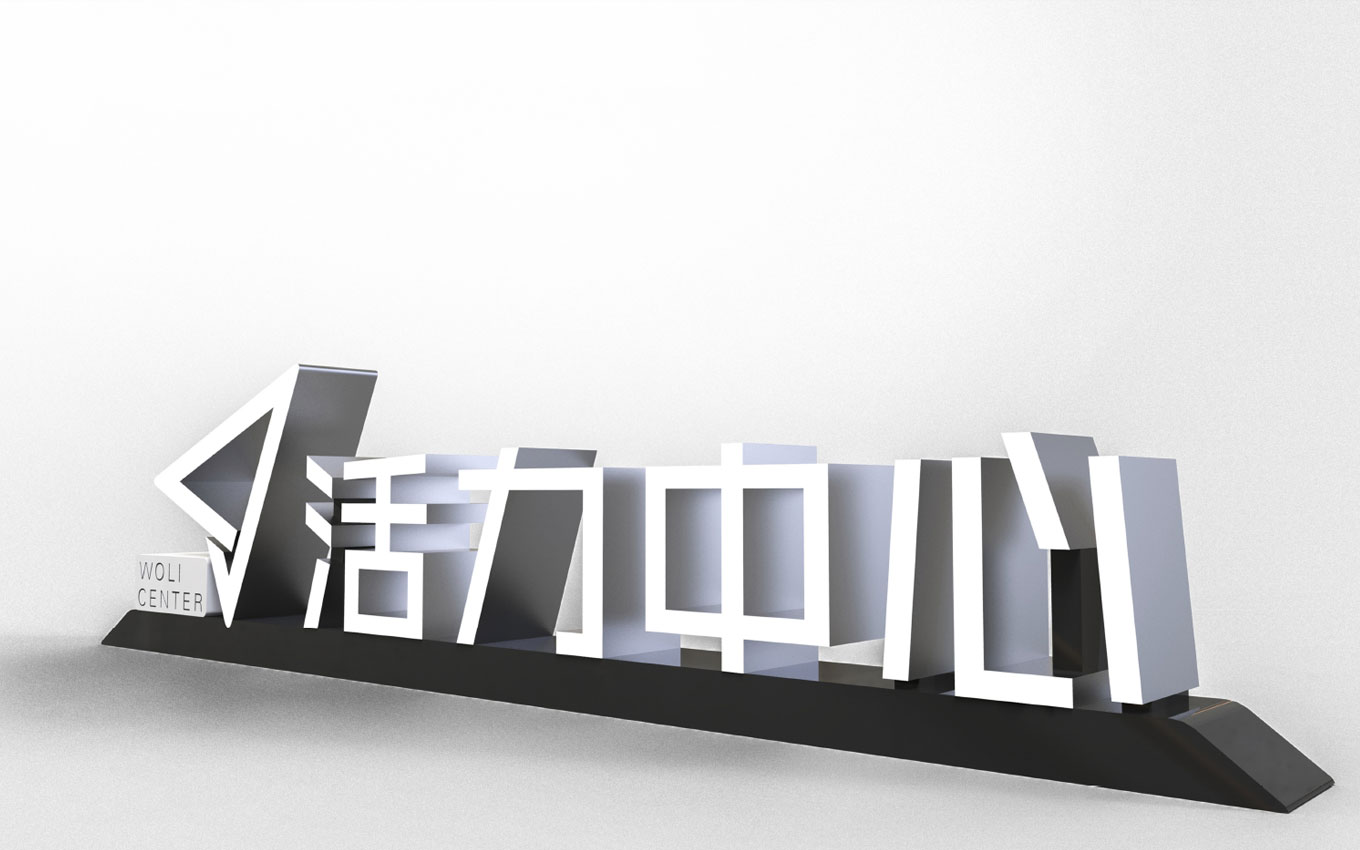 復地萬科活力中心導視設計總臺接待處設計與金屬字體設計