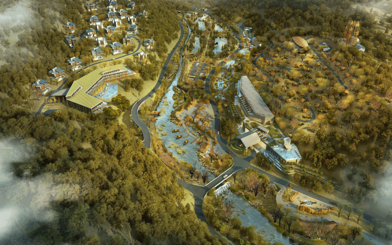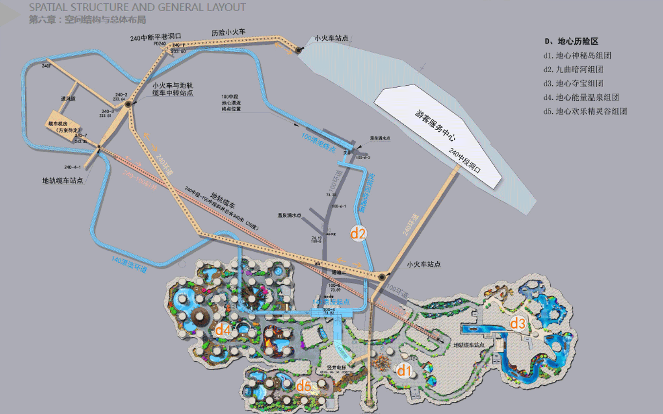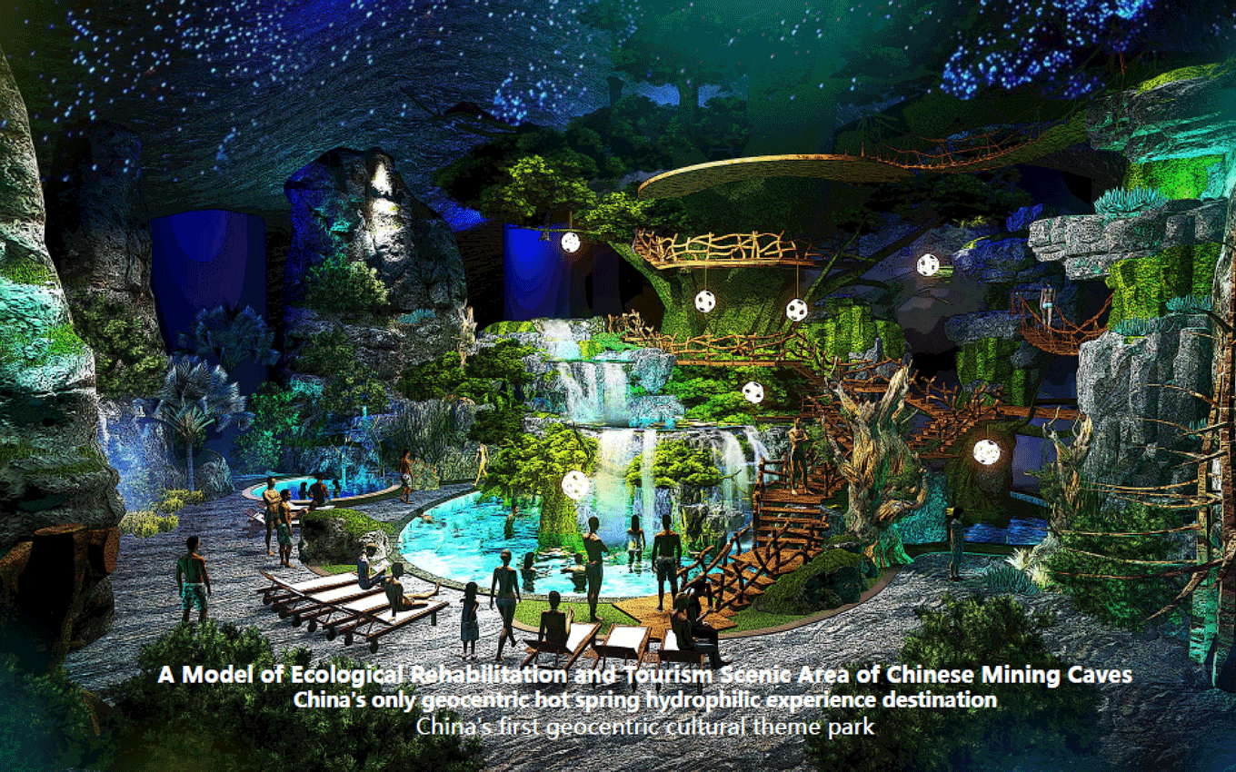 遠古公園景區,位于規劃區中部,為東西走向的兩山相夾谷地地形東部直接連接605縣道,西部與農田相接。絕大部分為原礦山尾水排放區域,業主方要求打造成濕地公園遠古公園度假景區功能定位,景區形象展示、停車服務、休閑公園、污水凈化、主題餐飲。目標市場為家庭游和主題游樂客群;策劃理念是利用交通對接便利的條件,展示地心公園主題形象和主題景觀,配建停車、餐飲等配套服務功能,遠古公園以遠古濕地為形態,以遠古荒蕪為景觀風格,實現遠古公園與地心公園整體風格的協調統一。