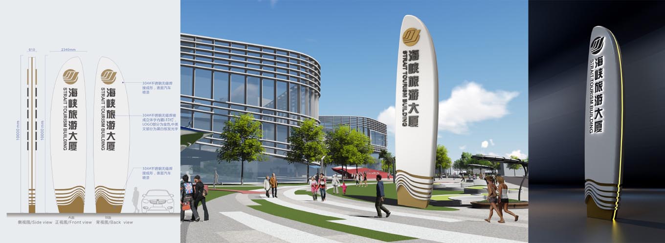 海峽旅游服務中心為一個大型城市綜合體,總用地面積達 22萬㎡,總規劃建筑面積達46.5萬㎡,其中地上373000㎡;地下:92000㎡;總容積率1.6,總建筑密度50.33%,綜合綠地率18.69%(架空層綠化折算后),共規分五個子地塊,如下:海峽旅游大廈(商場寫字樓)、旅游博覽中心(商場+SOHO)、旅游會展中心(商場+展廳)、廈金客運碼頭三期(交通樞紐)、佰翔五通酒店(五星級酒店+商場)。由人和時代集團整體規劃海峽旅游服務中心商業綜合體標識設計制作服務。